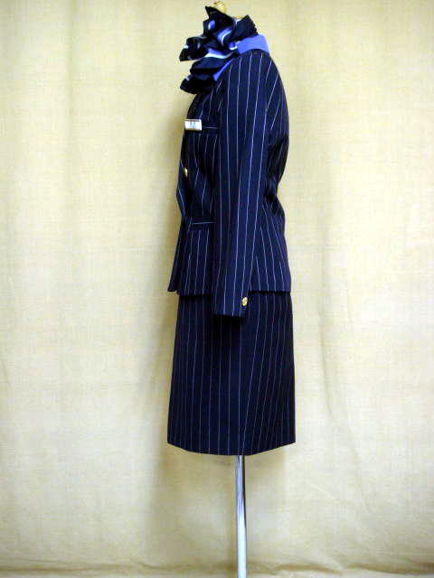 ジャケット:41 x 59 (7A3) スカート:64〜68 x 59 (9A3) ブラウス(バイオレット 7号) パンプス(24.5cm) スカーフ・エプロン・名札 ≪*全て実際にフライトで使用していたものです。≫ ◎歴代のANA制服 ◎ANA制服の歴史 |